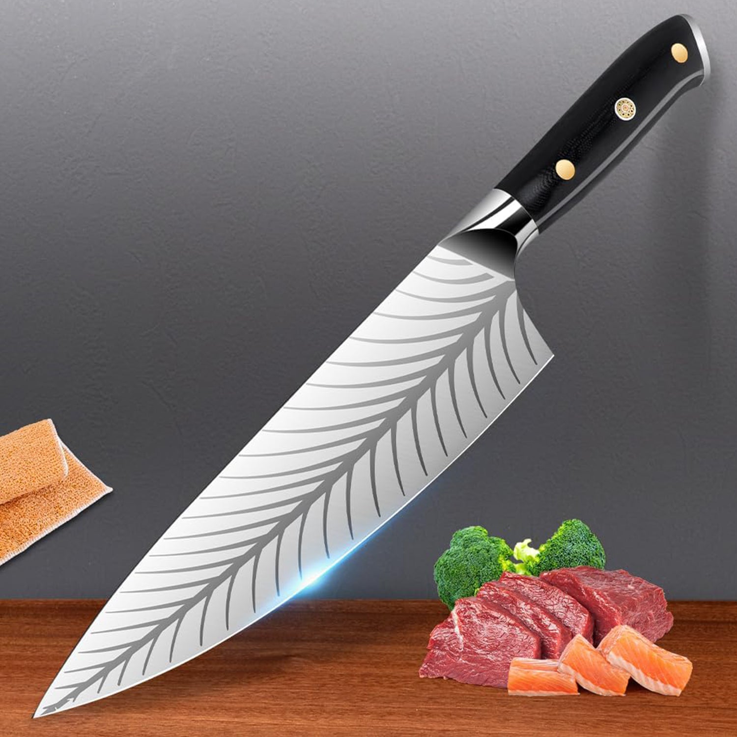 KD Chef Knife Wood Handle Kitchen Knife with Sheath & Gift Box